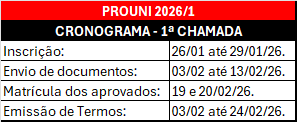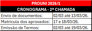 Fique atento aos prazos de envio da documentação mencionados acima, é de responsabilidade do candidato o cumprimento dos prazos e envio da documentação completa solicitada, inclusive documentações adicionais em caso de solicitação da IES quando for necessário.