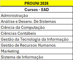 É um programa do Ministério da Educação, criado pelo governo federal em 2004, que oferece bolsas de estudo, integrais e parciais (50%), em instituições particulares de educação superior, em cursos de graduação e sequenciais de formação específica, a estudantes brasileiros sem diploma de nível superior.