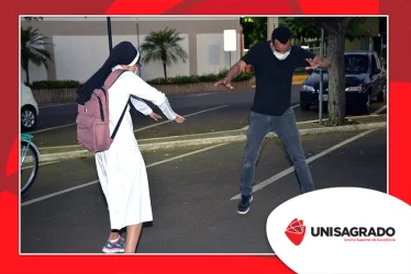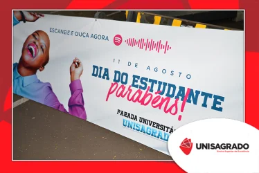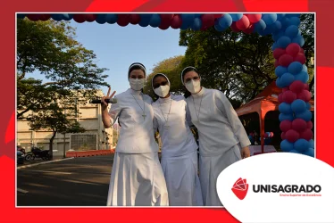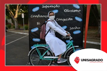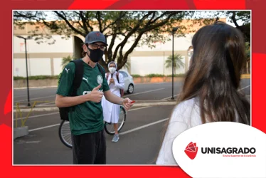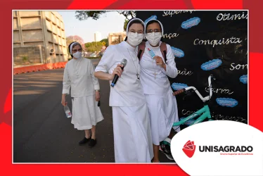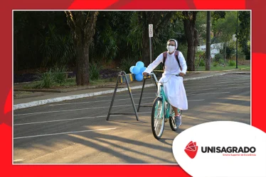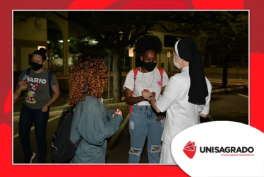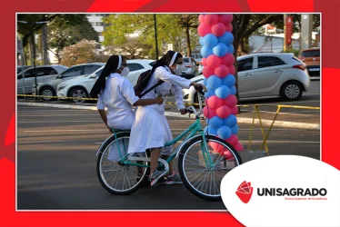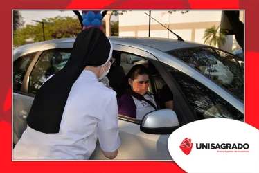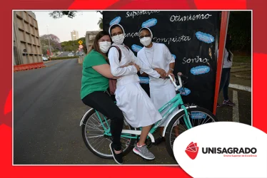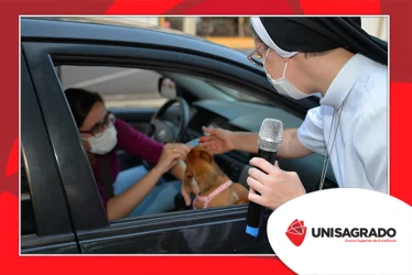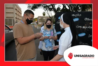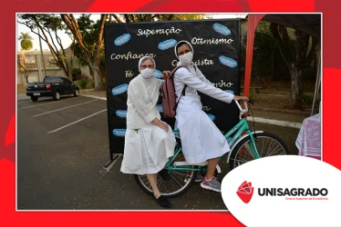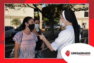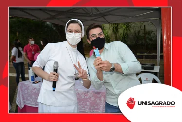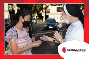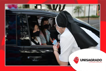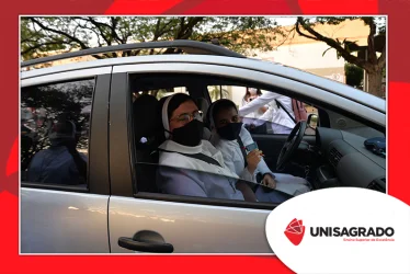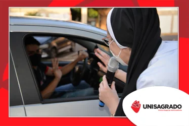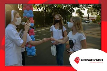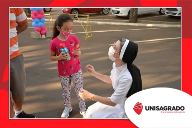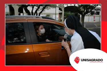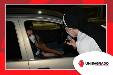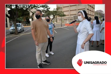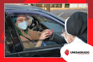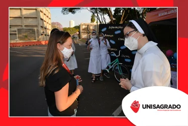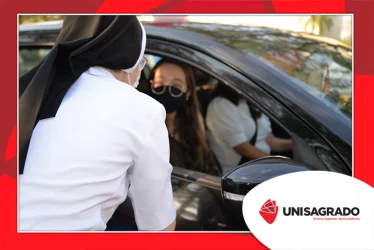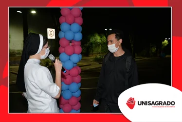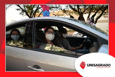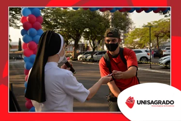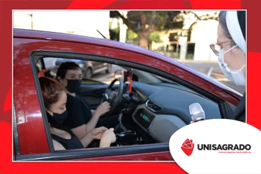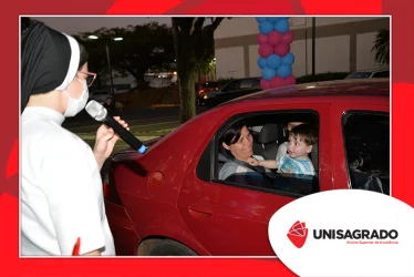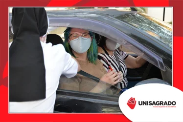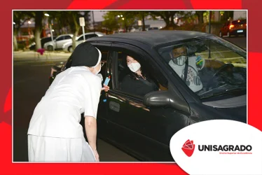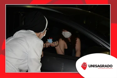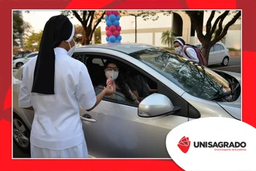 O UNISAGRADO realizou no dia 11 de agosto a 1ª Parada Universitária em comemoração ao Dia do Estudante. Com iniciativa do setor de Pastoral, o evento buscou aproximar os discentes da Instituição e promover um momento de acolhida e celebração. Após um longo período de ensino remoto emergencial, que totalizou 17 meses, foi possível realizar um encontro no estilo drive thru, contando com participações de quem estava de carro, moto, bicicleta ou até mesmo a pé. O evento ocorreu na entrada principal do campus, de forma presencial, seguindo todos os protocolos de saúde da Organização Mundial de Saúde (OMS) em decorrência da pandemia da Covid-19.