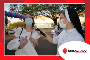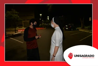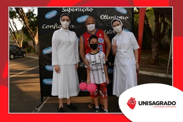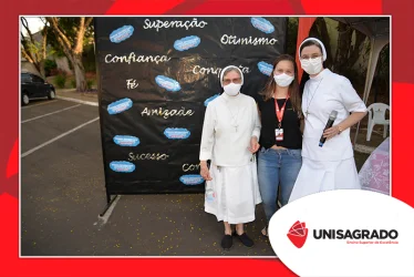 A celebração desta data comemorativa, dedicada aos estudantes da Graduação e Pós-Graduação do UNISAGRADO, teve o objetivo de aproximá-los com a Instituição, valorizando a jornada acadêmica e todas as conquistas no âmbito estudantil. Estiveram presentes também a Reitora Profª. Dra. Irmã Vânia Cristina de Oliveira, Irmãs da comunidade, equipe de Pastoral e Central de Eventos. "A recepção foi realizada com uma acolhida calorosa feita pela Irmã Giuliane Ciniciato que transmitiu através de suas palavras a alegria de tê-los conosco", pontua o colaborador da Pastoral Rodrigo César Gonçalves.