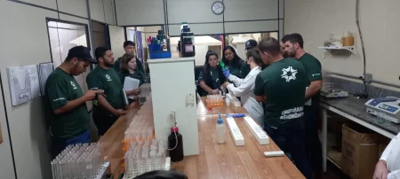 Erika ressalta que a visita ao laboratório foi marcante também para que os discentes acompanhassem todo o processo laboratorial de análise de solo e parte aérea, que resumidamente, envolve o recebimento das amostras, a secagem, a pesagem, os processos físicos e químicos e a emissão do laudo. “Saliento a importância do laudo, pois através dele o Engenheiro Agrônomo consegue diagnosticar as condições físico-químicas do solo e/ou da planta, permitindo avaliar a necessidade de nutrientes que devem ser fornecidos por meio de adubação, garantidos melhores condições para a cultura desejada e consequentemente, maior produtividade”, conclui.