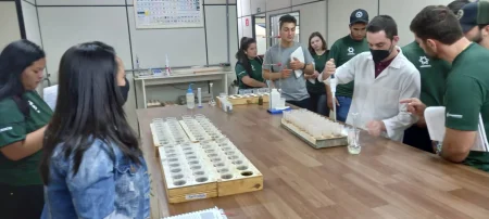 No dia 12 de maio, os estudantes do terceiro ano do curso de Engenharia Agronômica do UNISAGRADO visitaram o Laboratório de Análises Agrícolas e Ambientais de Botucatu (Agrilab), tendo a oportunidade de conhecer as instalações e as metodologias para análise de fertilidade do solo e nutrição de plantas, acompanhando a rotina do laboratório e aplicando na prática os conhecimentos teóricos abordados em sala de aula.