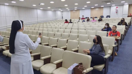 Nesta segunda-feira (06), estudantes líderes dos cursos de Artes, Ciência da Computação, Design, Farmácia, História, Letras-Tradutor, Nutrição e Psicologia participaram do primeiro “Encontro com a Reitora”, com o tema “Liderança Jovem”. O projeto visa estreitar os laços com os estudantes e explorar diversos assuntos de interesse que possam contribuir para a formação integral dos discentes. Sendo assim, a proposta é de que os encontros aconteçam mensalmente. A Reitora do UNISAGRADO, Profª. Dra. Irmã Vânia Cristina de Oliveira conversou com a equipe de Comunicação sobre o primeiro momento do projeto - confira como foi o bate-papo!