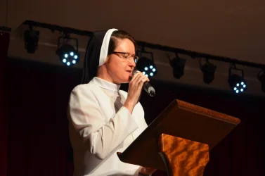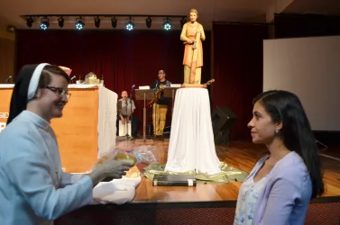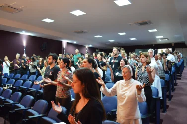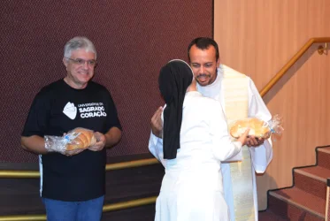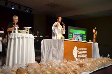 Na procissão de entrada, colaboradores levaram alguns símbolos de suas atividades na USC. Ao final, a Prof.ª Dra. Irmã Susana de Jesus Fadel agradeceu a todos os presentes pelo trabalho realizado na Universidade.