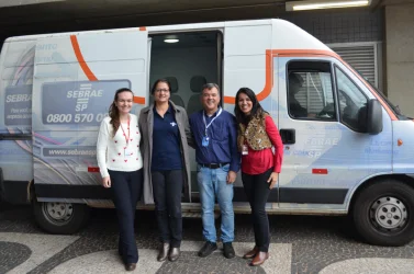 O curso de Estética e Cosmética recebeu o SEBRAE para falar sobre Empreendedorismo; o momento contou com palestra e atendimento no SEBRAE Móvel