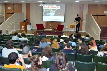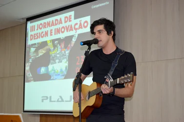 A 3ª Jornada de Design e Inovação terminou com Rafael José Geraldo, que falou sobre seu trabalho como designer na empresa Mstech. Rafael trabalha com design para cursos EaD, objetos de Aprendizagem, games, materiais gráficos etc.