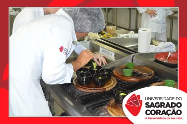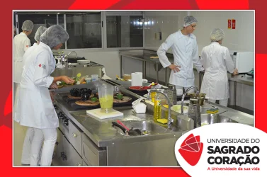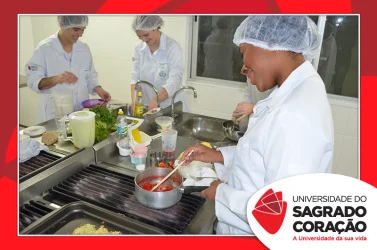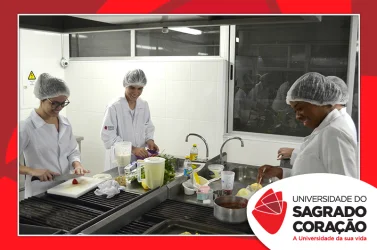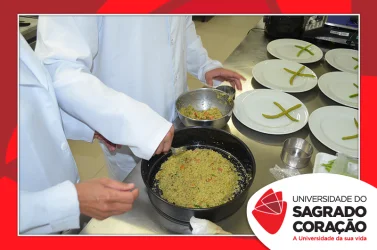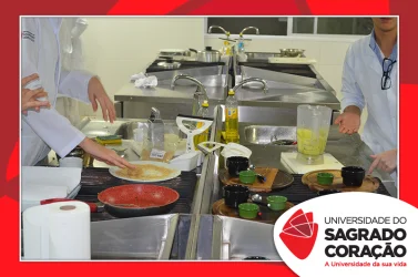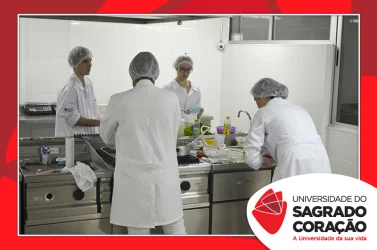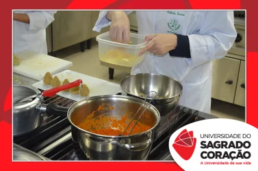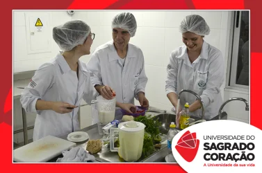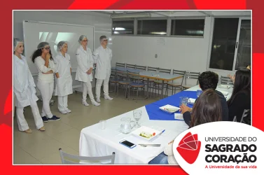 Os estudantes do 2º ano do curso de Nutrição da Universidade do Sagrado Coração (USC), nos dias 5 e 6 de junho, realizaram o Seminário “Desenvolvimento de Preparações Saudáveis: da teoria à prática”, no Laboratório de Nutrição, como atividade prática da disciplina de Seleção e Preparo dos Alimentos, sob a supervisão da Prof.ª Dra. Milene Peron Rodrigues Losilla. Os estudantes prepararam refeições saudáveis, de acordo com uma patologia escolhida por cada grupo e foram avaliados por jurados.