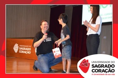 O primeiro dia de evento continuou com lotação máxima do Auditório João Paulo II e muita emoção. Abrindo a programação do período noturno, o paciente da SORRI-Bauru e da Clínica de Fisioterapia da USC, Leonardo Shirazawa, junto a sua professora de Música, Mara Sínteque, animaram os participantes com uma apresentação musical de clássicos como Love Me Do e Twist & Shout, dos Beatles. Na sequência, o Fisioterapeuta do Instituto Trata Marília, M.e Ricardo José Tecchio Serrão, compartilhou sua vivência no Instituto, uma rede de clínicas de fisioterapia para os principais problemas de joelho e quadril, e falou da biomecânica, uma ciência que investiga o movimento sob os aspectos mecânicos, suas causas e efeitos; e, também, a fisioterapeuta neuromuscular, Esp. Ana Paula do Prado Marques Ferreira, ministrou a palestra “Microfisioterapia para Prevenção e Reabilitação”.