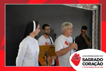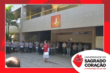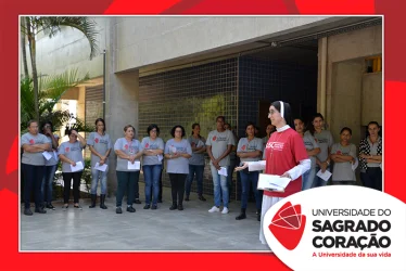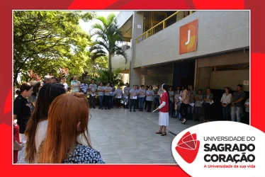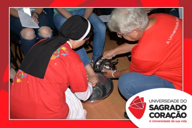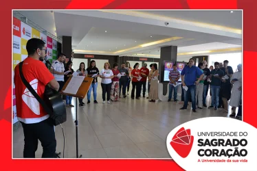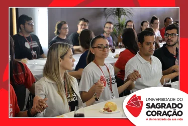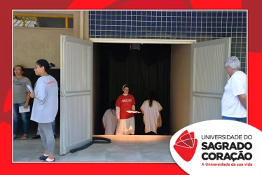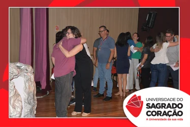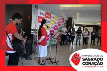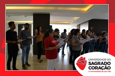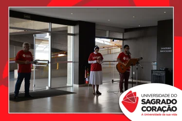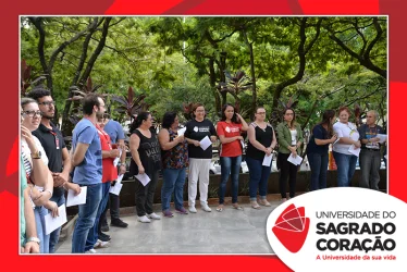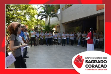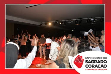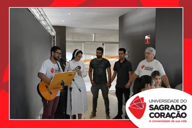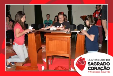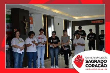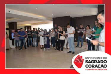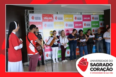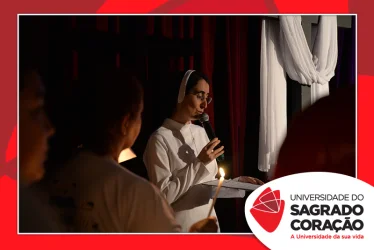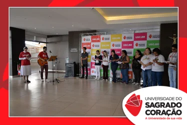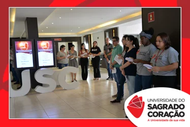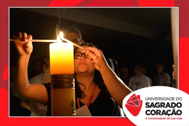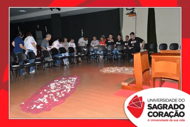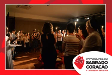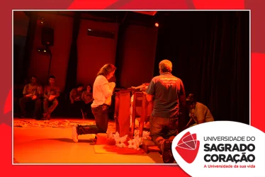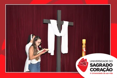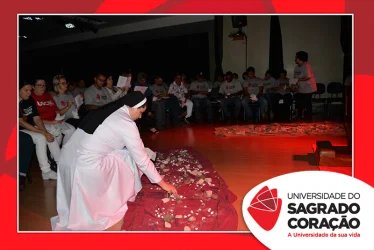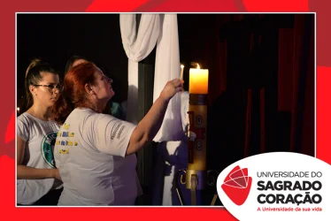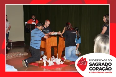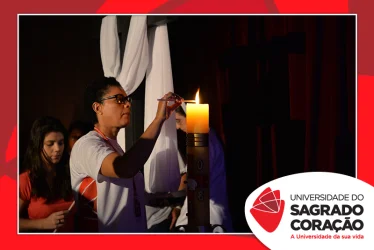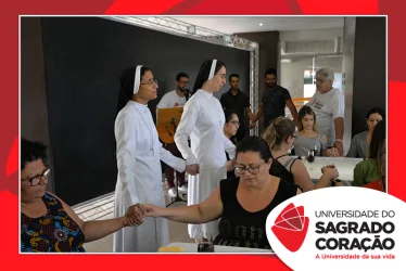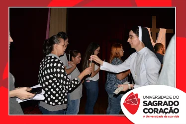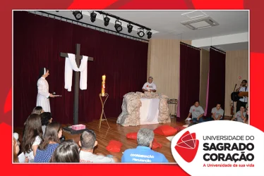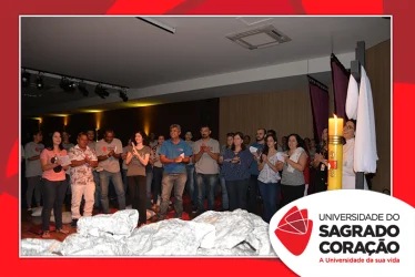 Em preparação à chegada da Páscoa, a Universidade do Sagrado Coração (USC) realizou a Celebração Pascal de 2019. Nos dias 16 e 17 de abril, nos auditórios do Bloco J, colaboradores se reuniram para momentos de piedade, reflexão, gratidão e amor. Conduzida pela equipe da Pastoral da Universidade (PdU), a celebração proporcionou aos presentes vivências para aprofundar os mistérios da fé celebrados ao longo da Semana Santa, culminando com a Páscoa.