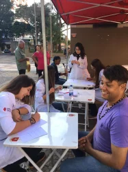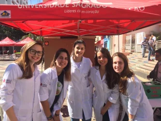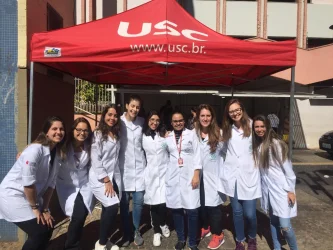No dia 15 de junho os estudantes do terceiro e quarto ano de Nutrição da Universidade do Sagrado Coração (USC) participaram do Projeto “Amigos Solidários”, que é uma realização da Pró-Reitoria de Ação e Extensão Comunitária em parceria com a Catedral do Divino Espírito Santo de Bauru – SP. Na ocasião, foram atendidas mais de 50 pessoas com orientações sobre lavagem correta das mãos, cálculo de índice de força e diagnóstico sobre alimentação e saúde da população.