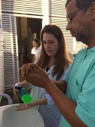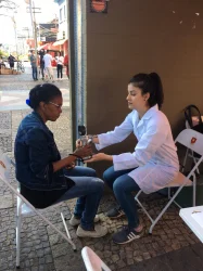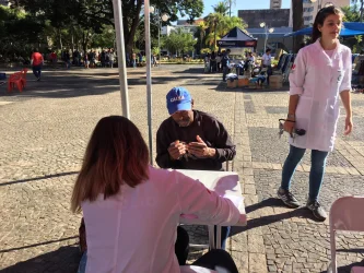 A segunda ação do Projeto movimentou 08 estudantes que realizaram atendimentos às pessoas que transitavam pela Praça Rui Barbosa e aos moradores de rua. Foram oferecidas orientações sobre lavagem correta das mãos, a importância da higienização, assim como foi calculado o índice de força através de um dinamômetro manual, cujo objetivo é avaliar a função do músculo esquelético. Além dessas atividades, foi realizado, também, um diagnóstico sobre as principais demandas alimentares e de saúde da população, a fim de, promover próximas ações com os resultados da pesquisa.