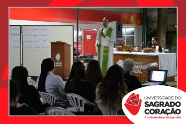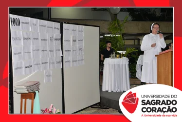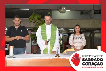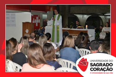 A programação da semana prosseguiu com o encontro do GOU, no dia 06 e, com a Missa presidida pelo Padre Adinam Ronieri da Silva, no dia 07. A celebração reuniu estudantes e professores que representaram seus cursos de graduação na procissão de entrada, trazendo palavras que simbolizavam as intenções para o semestre. Na ocasião, a Reitora da USC, Prof.ª Dra. Irmã Susana de Jesus Fadel, ofereceu as boas-vindas aos presentes e destacou as palavras “confiança” e “ânimo”, como guia para as atividades do semestre. Em sua homilia, Pe. Adinam, ressaltou a importância da fé e confiança que depositamos no Senhor e a necessidade de trilharmos o semestre com os corações cheios destes dons.